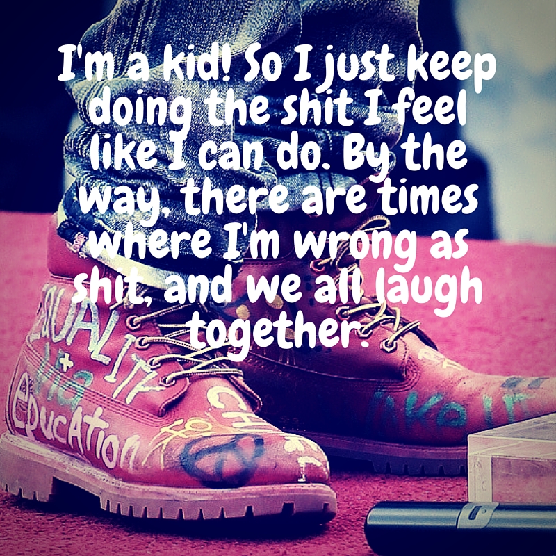 I’m a kid! So I just keep doing the shit I feel like I can do. By the way, there are times where I’m wrong as shit, and we all laugh together.
