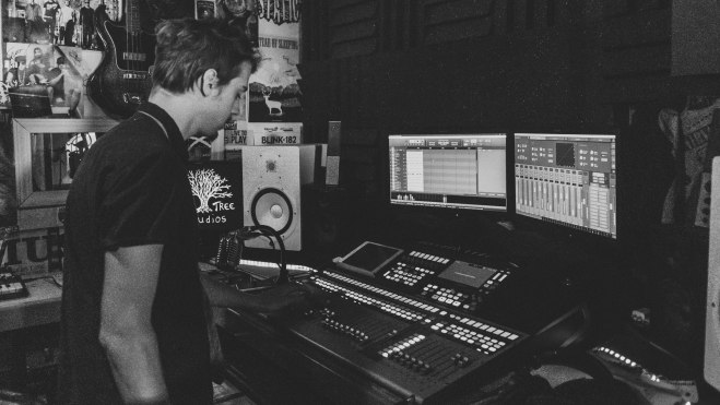 The studio is called StoneTree Studios, it’s currently at my best friend’s parent’s house in Fishers. We started when I was a sophomore in high school and he was a junior. It started out small in the garage, just a small modest setup with a cardboard box and a mic in the middle of the room. It was a pretty trash set-up. [Laughs.]